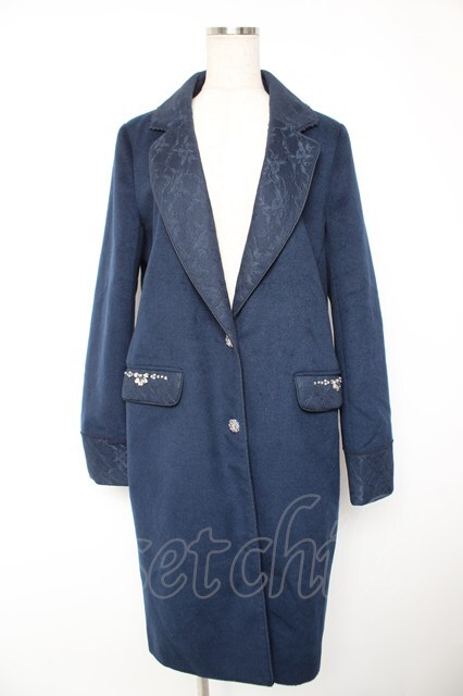 axes femme / レース襟チェスターコート M 紺 Y-25-12-23-130-AX-CO-SZ-ZY