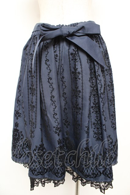 axes femme / リボン付フロッキーptスカート 紺 Y-25-12-23-142-AX-SK-SZ-ZY