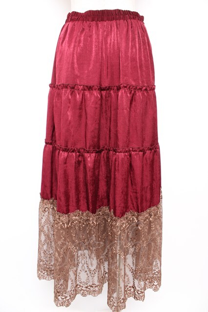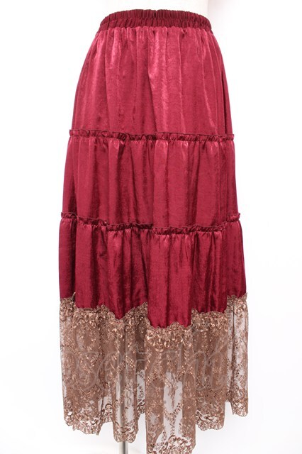 axes femme / 裾レースティアードスカート M ワイン Y-25-12-23-147-AX-SK-SZ-ZY