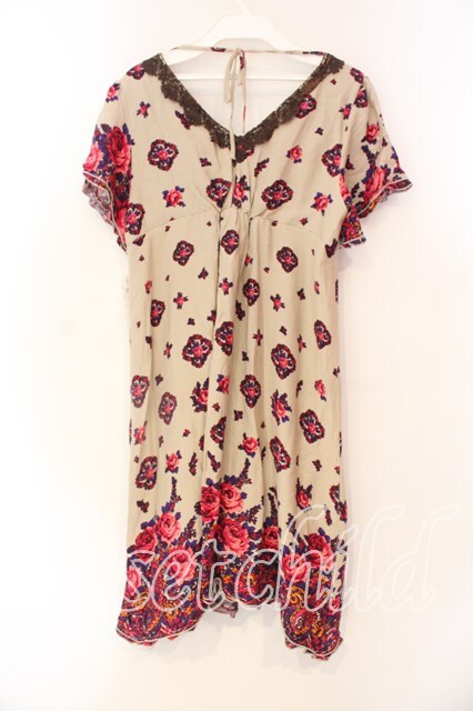 axes femme / Vネック花柄ワンピース M ベージュ O-25-12-22-1012-AX-OP-IG-OS [2100080000068214-O-25-12-22-1012-AX-OP-IG-OS]