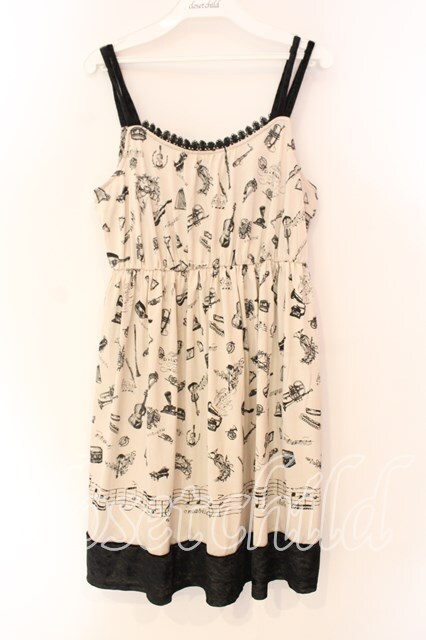 axes femme / 楽器柄キャミワンピース M ベージュ O-25-12-22-1013-AX-OP-IG-OS