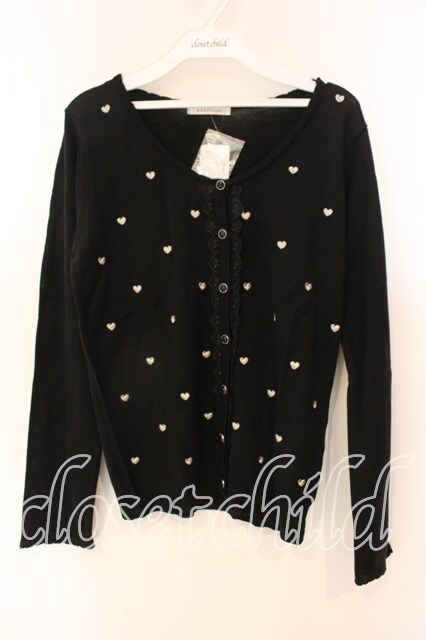 axes femme / ハート刺繍カーデ M クロ O-25-12-22-1036-AX-TO-IG-OS