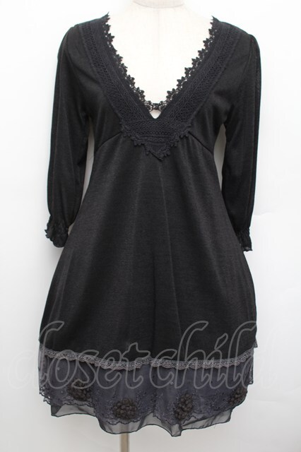 axes femme / 裾チュールチュニック 黒 S-25-12-23-032-AX-TO-HR-ZS