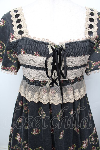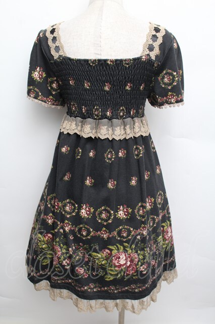 axes femme / カットソー花リース柄チュニ 黒 S-25-12-23-034-AX-OP-HR-ZS