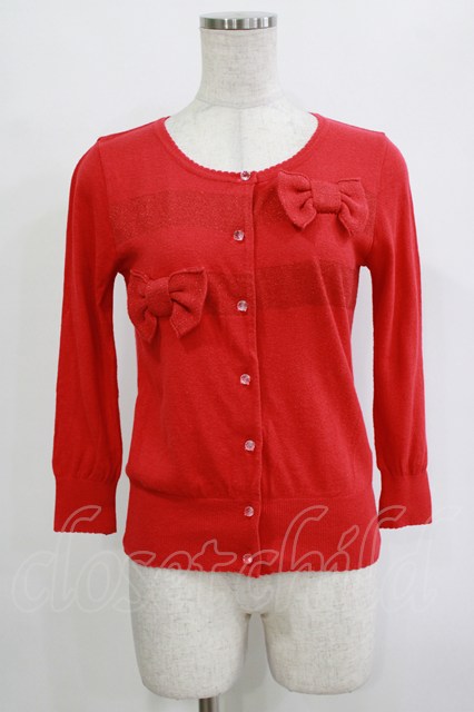 Emily Temple cute / ラメリボンカーディガン レッド H-25-12-25-1050-ET-TO-KB-ZH [2100030000081906-H-25-12-25-1050-ET-TO-KB-ZH]
