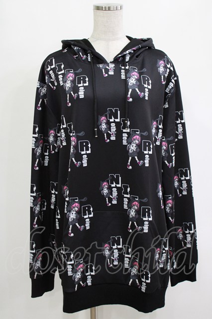 NieR Clothing / プリントプルパーカー 黒 H-25-12-25-1037-PU-TO-KB-ZH