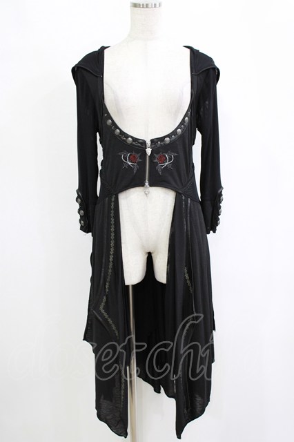 Ozz oneste / 薔薇刺繍シアーオーバーカーデ ブラック H-25-12-25-1016-OO-TO-KB-ZH