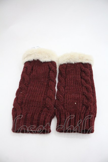 axes femme / リボン付フェミニンニット手袋 ワイン I-25-12-22-120-AX-ZA-TE-ZI