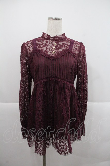 axes femme / ビスチェ切替風レースブラウス M ワイン I-25-12-22-001-AX-BL-TE-ZI [2100060000047829-I-25-12-22-001-AX-BL-TE-ZI]