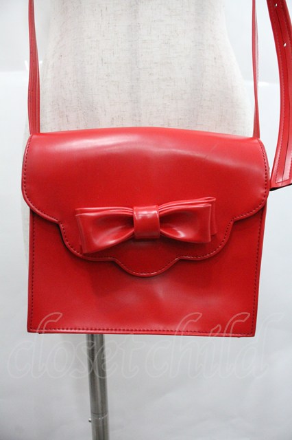Heart E / スカラップリボンショルダーバッグ 赤 I-25-12-22-110-LO-BG-SA-ZI