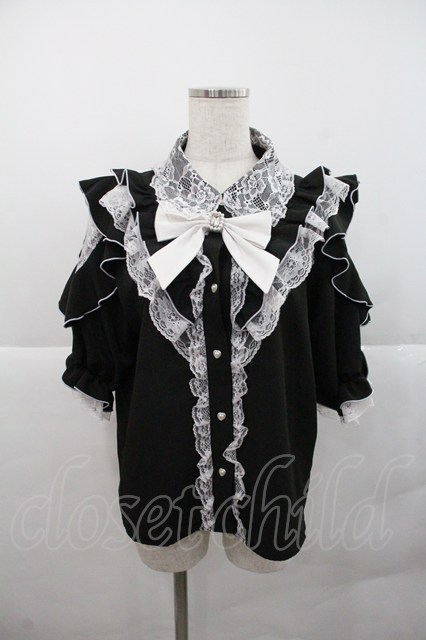 NOEMIE / 袖レースアップフリルブラウス 黒 I-25-12-22-004-LO-BL-SA-ZI [2100060000046281-I-25-12-22-004-LO-BL-SA-ZI]