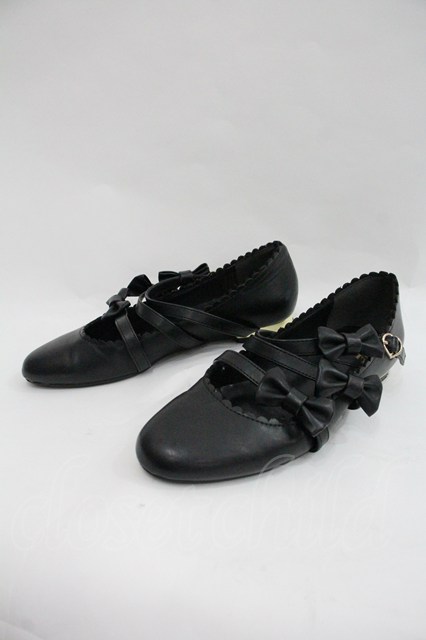 Angelic Pretty / お散歩リボンシューズ S 黒 I-25-12-22-124-AP-SH-SA-ZI