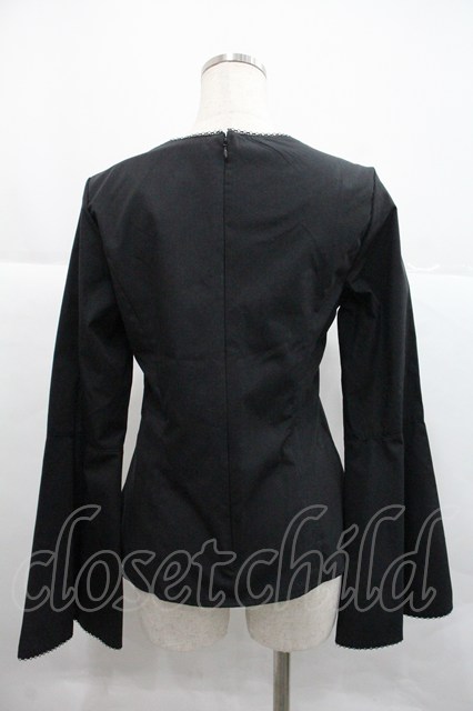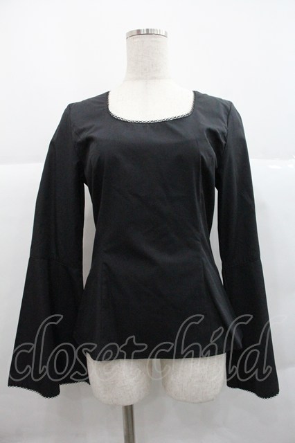 MIHO MATSUDA / ノーカラーフレアスリーブブラウス M ブラック I-25-12-22-042-GO-BL-SA-ZI