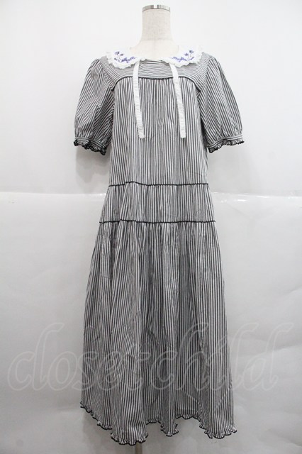 PINK HOUSE / ローン襟付きストライプミディワンピース 黒X白 I-25-12-22-083-LO-OP-SA-ZI [2100060000048127-I-25-12-22-083-LO-OP-SA-ZI]