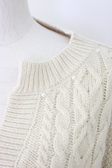 axes femme / 襟元パールニット M ベージュ T-25-12-26-007-AX-TO-SA-ZT