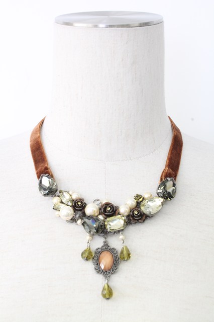 axes femme / ゴージャスビジューチョーカー カーキ T-25-12-26-040-AX-AC-SA-ZT