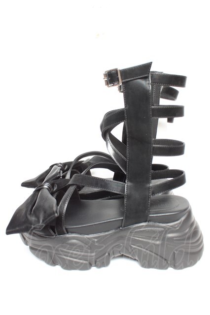Fickle Bebe / リボンレースアップサンダル L 黒 Y-25-12-25-103-0-SH-SZ-ZY