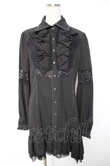 Ozz Croce / レースフリルシャツワンピース 黒 Y-25-12-25-109-OO-OP-SZ-ZY [2100070000057428-Y-25-12-25-109-OO-OP-SZ-ZY]