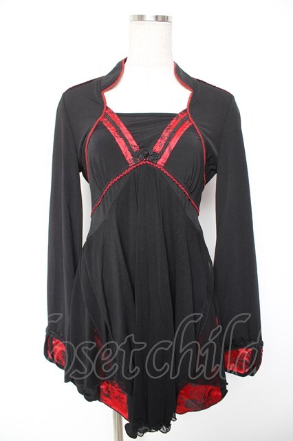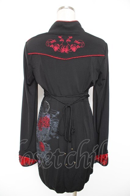 Ozz oneste / 刺繍入りチャイナワンピース 黒×赤 Y-25-12-25-110-OO-OP-SZ-ZY [2100070000057435-Y-25-12-25-110-OO-OP-SZ-ZY]