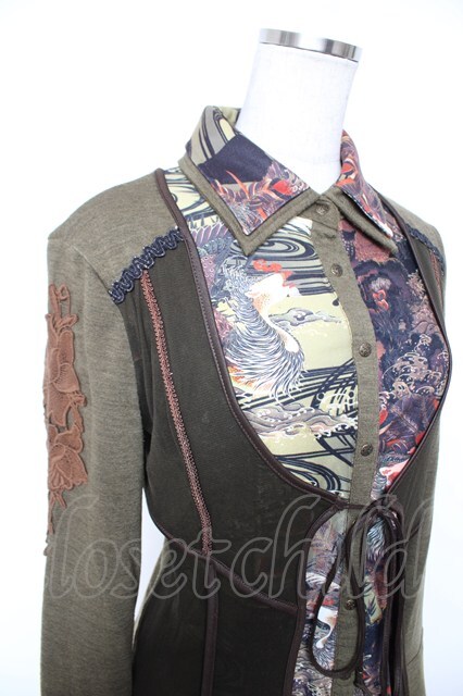 Ozz oneste / 和柄レイヤードトップス カーキ Y-25-12-25-111-OO-TO-SZ-ZY [2100070000057437-Y-25-12-25-111-OO-TO-SZ-ZY]