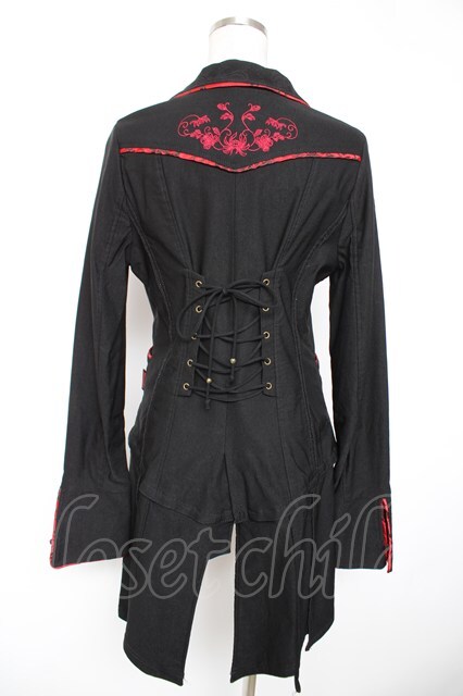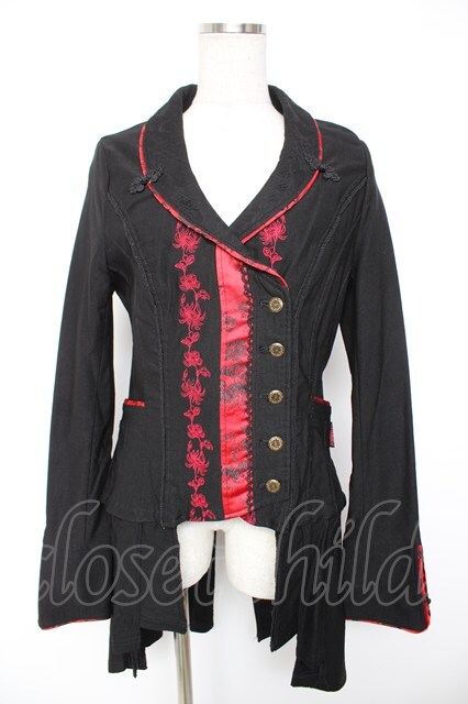 Ozz oneste / ジャガード×刺繍チャイナボタンジャケット 黒×赤 Y-25-12-25-113-OO-JA-SZ-ZY [2100070000057434-Y-25-12-25-113-OO-JA-SZ-ZY]