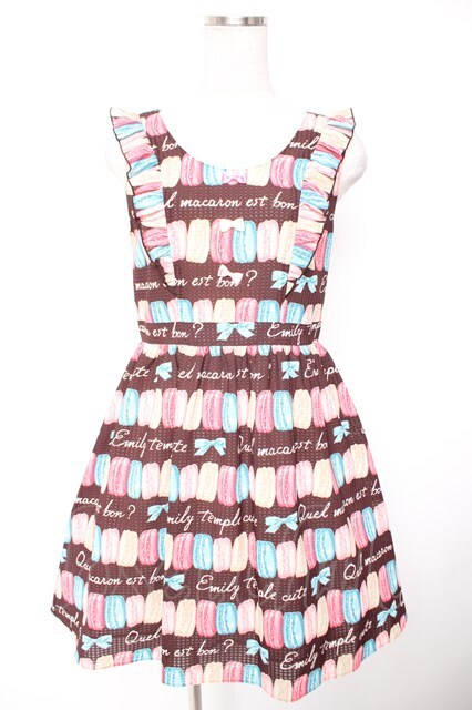 Emily Temple cute / マカロンプリントワンピース ブラウン Y-25-12-25-139-ET-OP-SZ-ZY