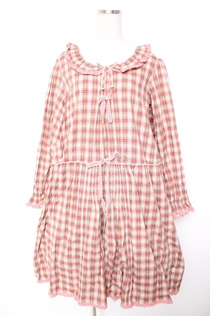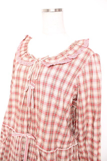 PINK HOUSE / オリジナルチェックワンピース F ベージュ×赤 Y-25-12-25-153-LO-OP-SZ-ZY