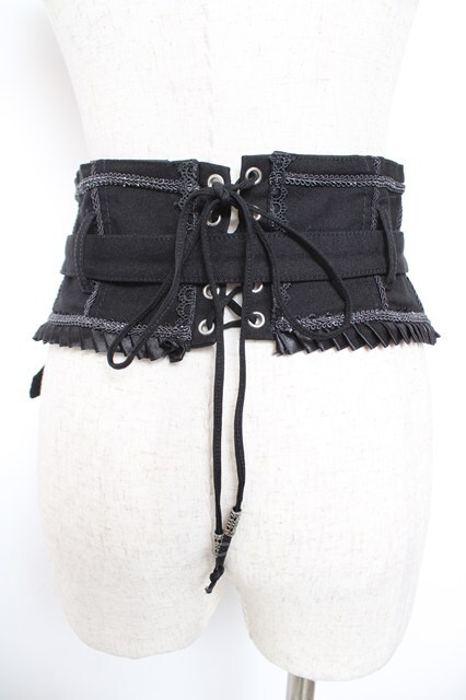 Ozz Croce / ベルトデザイン薔薇刺繍ショートコルセット 黒 Y-25-12-25-160-OO-TO-SZ-ZY [2100070000057424-Y-25-12-25-160-OO-TO-SZ-ZY]