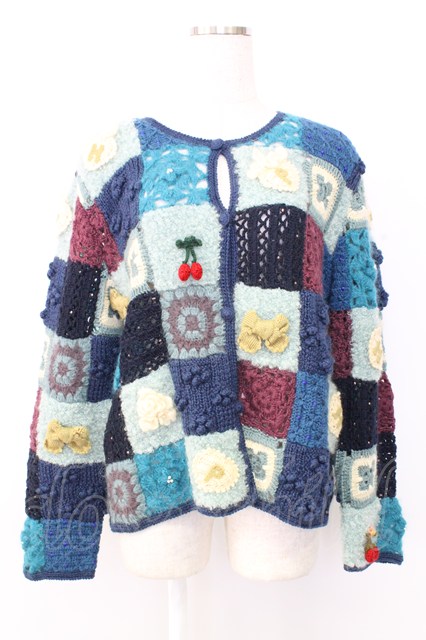 PINK HOUSE / パッチワークニットカーディガン 青 T-25-12-25-002-LO-TO-SA-ZT [2100060000037426-T-25-12-25-002-LO-TO-SA-ZT]