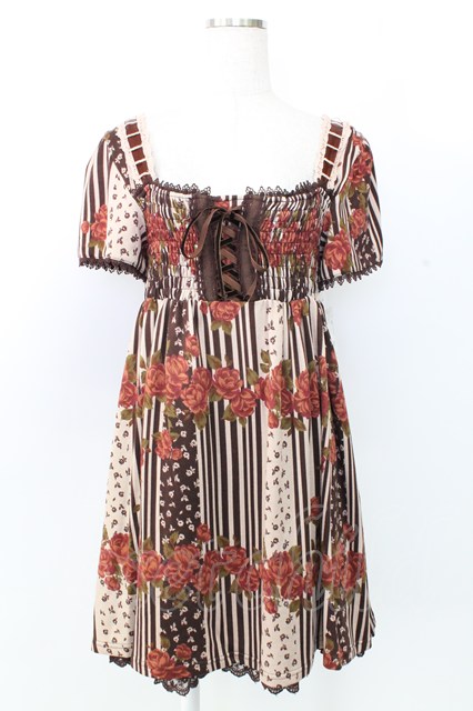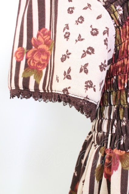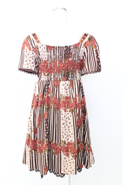 axes femme / ストライプX花プリントチュニック M アカ T-25-12-25-007-AX-OP-SA-ZT