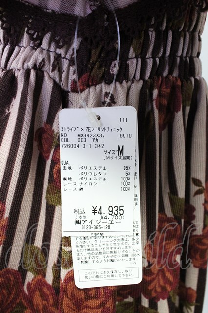 axes femme / ストライプX花プリントチュニック M アカ T-25-12-25-007-AX-OP-SA-ZT [2100060000039721-T-25-12-25-007-AX-OP-SA-ZT]