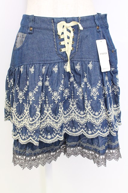 axes femme / 編み上げ&刺繍デニムスカート L インディゴ T-25-12-25-031-AX-SK-SA-ZT [2100060000039727-T-25-12-25-031-AX-SK-SA-ZT]