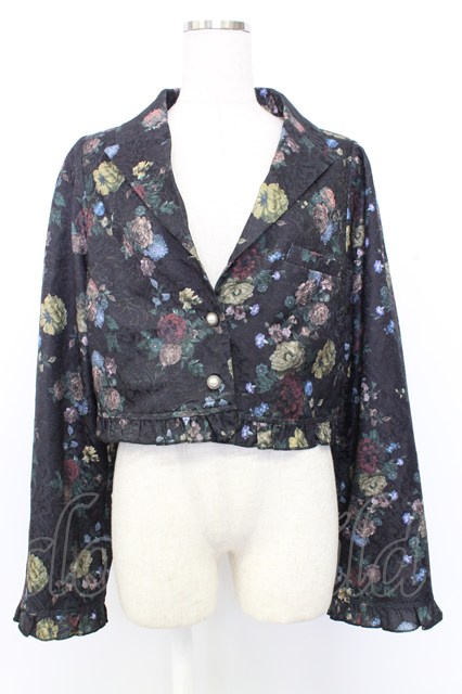 axes femme kawaii / クラシックブーケ柄ジャケット 黒 T-25-12-25-006-AX-JA-SA-ZT