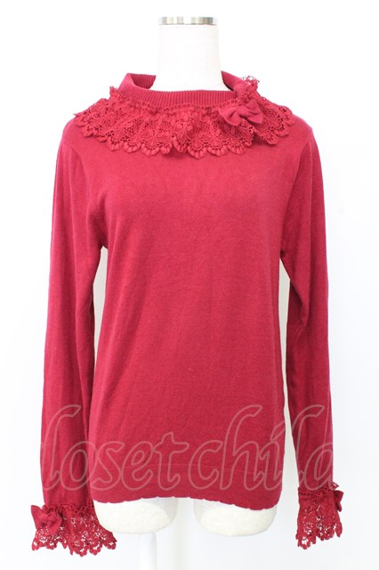 axes femme kawaii / レーシーフリルニットプル M ボルドー T-25-12-25-004-AX-TO-SA-ZT