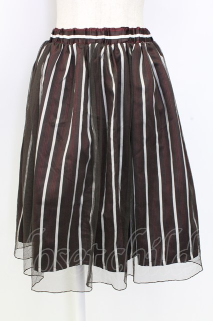 axes femme / サテンストライプチュールレイヤードスカート M ブラウン×レッド T-25-12-25-027-AX-SK-SA-ZT