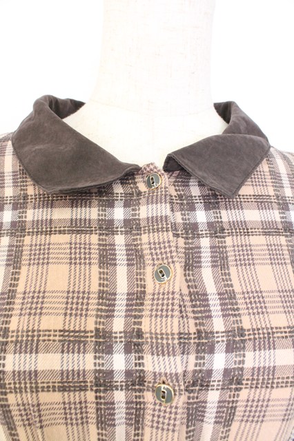 axes femme / モールチェック柄シャツワンピース M ブラウン T-25-12-25-011-AX-OP-SA-ZT