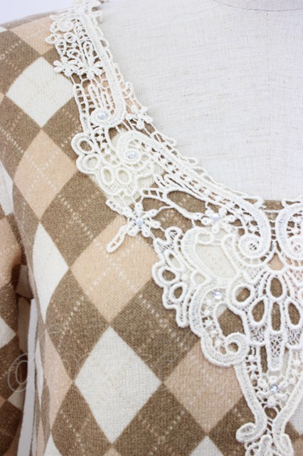 axes femme / アーガイルニットトップス アイボリーXベージュ T-25-12-27-002-AX-TO-SA-ZT