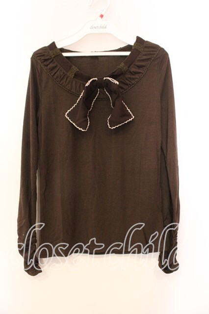 axes femme / シフォンリボンカットソー M ブラウン O-25-12-25-012-AX-TO-IG-OS