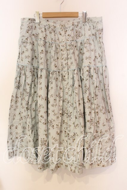 KANEKO ISAO / フラワータックスカート【お直しあり】 サックス O-25-12-25-090-EL-SK-IG-OS