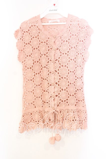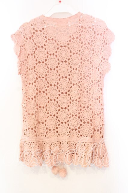 WONDERFUL WORLD / パッチワークかぎ編みベスト ピンク O-25-12-25-078-LO-TO-IG-OS