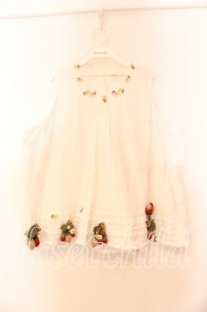 WONDERFUL WORLD / 苺編みぐるみ付きノースリーブブラウス シロ O-25-12-25-067-LO-BL-IG-OS [2100080000052706-O-25-12-25-067-LO-BL-IG-OS]