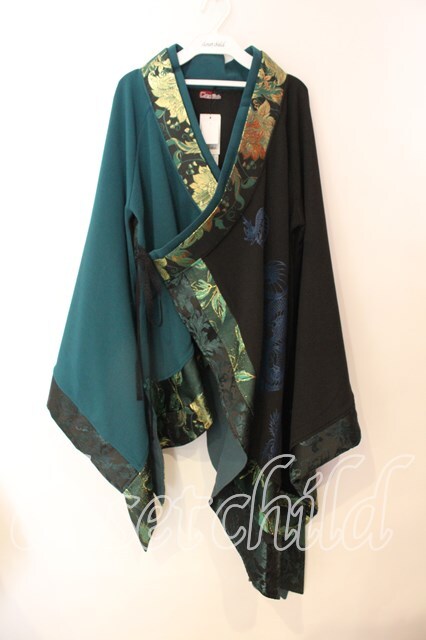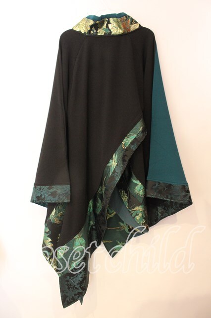 Qutie Frash / アシメ着物カーデ ブラック×グリーン O-25-12-25-038-QU-JA-IG-OS [2100080000069606-O-25-12-25-038-QU-JA-IG-OS]