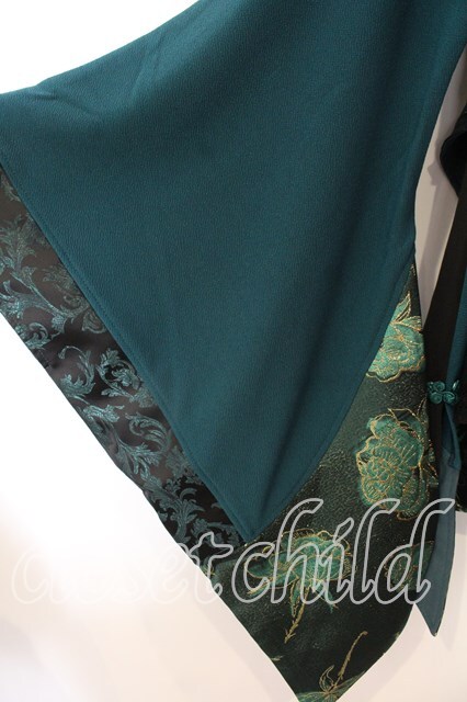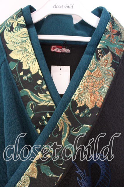 Qutie Frash / アシメ着物カーデ ブラック×グリーン O-25-12-25-038-QU-JA-IG-OS