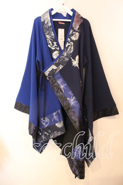 Qutie Frash / アシメ着物カーデ ブルー O-25-12-25-039-QU-JA-IG-OS [2100080000069607-O-25-12-25-039-QU-JA-IG-OS]