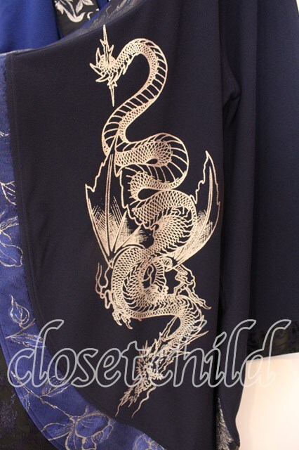 Qutie Frash / アシメ着物カーデ ブルー O-25-12-25-039-QU-JA-IG-OS
