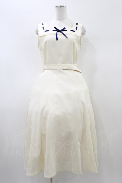an another angelus / はしごリボン使いスクエアネックワンピース Free Ivory/Navy H-26-01-04-1051-CA-OP-NS-ZH [2100030000081971-H-26-01-04-1051-CA-OP-NS-ZH]