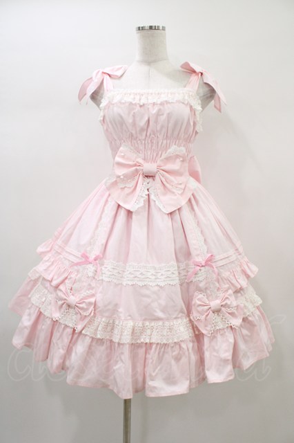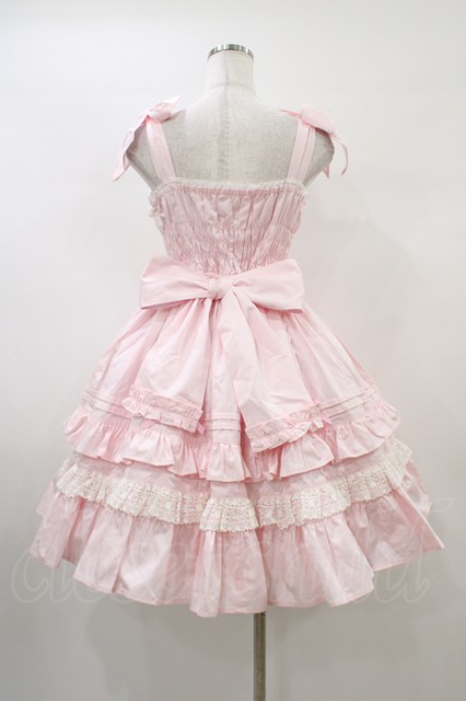 Angelic Pretty / リボンシャーリングジャンパースカート Free ピンク H-26-01-04-1021-AP-OP-NS-ZH