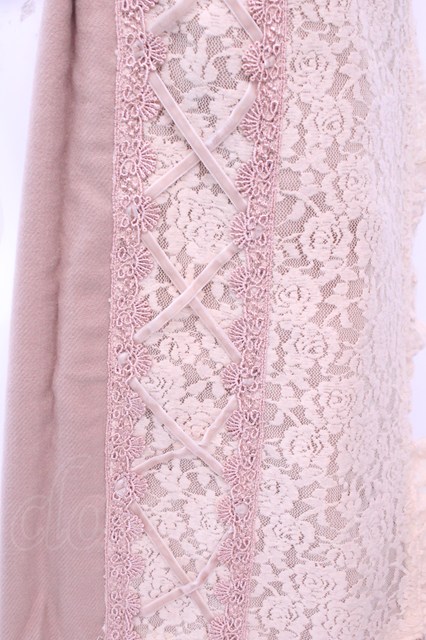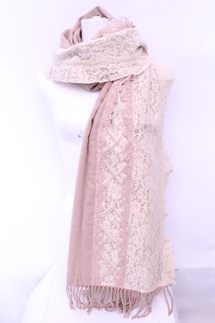 axes femme / 起毛レース切替大判ストール ピンクベージュ O-25-12-25-1052-AX-ZA-IG-OS