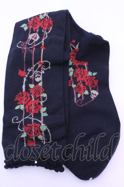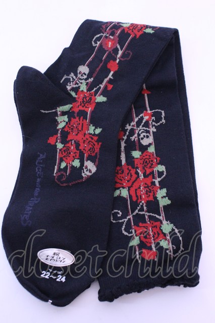 ALICE and the PIRATES / ローズジェイル柄ハイソックス クロ×アカ O-25-12-25-1031-PA-ZA-IG-OS [2100080000069893-O-25-12-25-1031-PA-ZA-IG-OS]