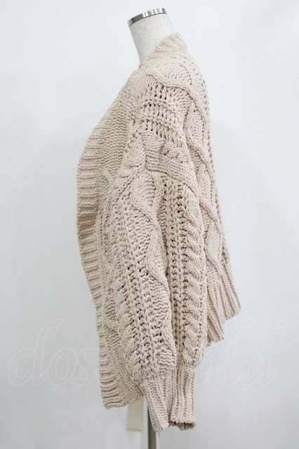 merry jenny / レースアップケーブルニットカーディガン ベージュ H-25-12-28-1040-LO-TO-KB-ZH